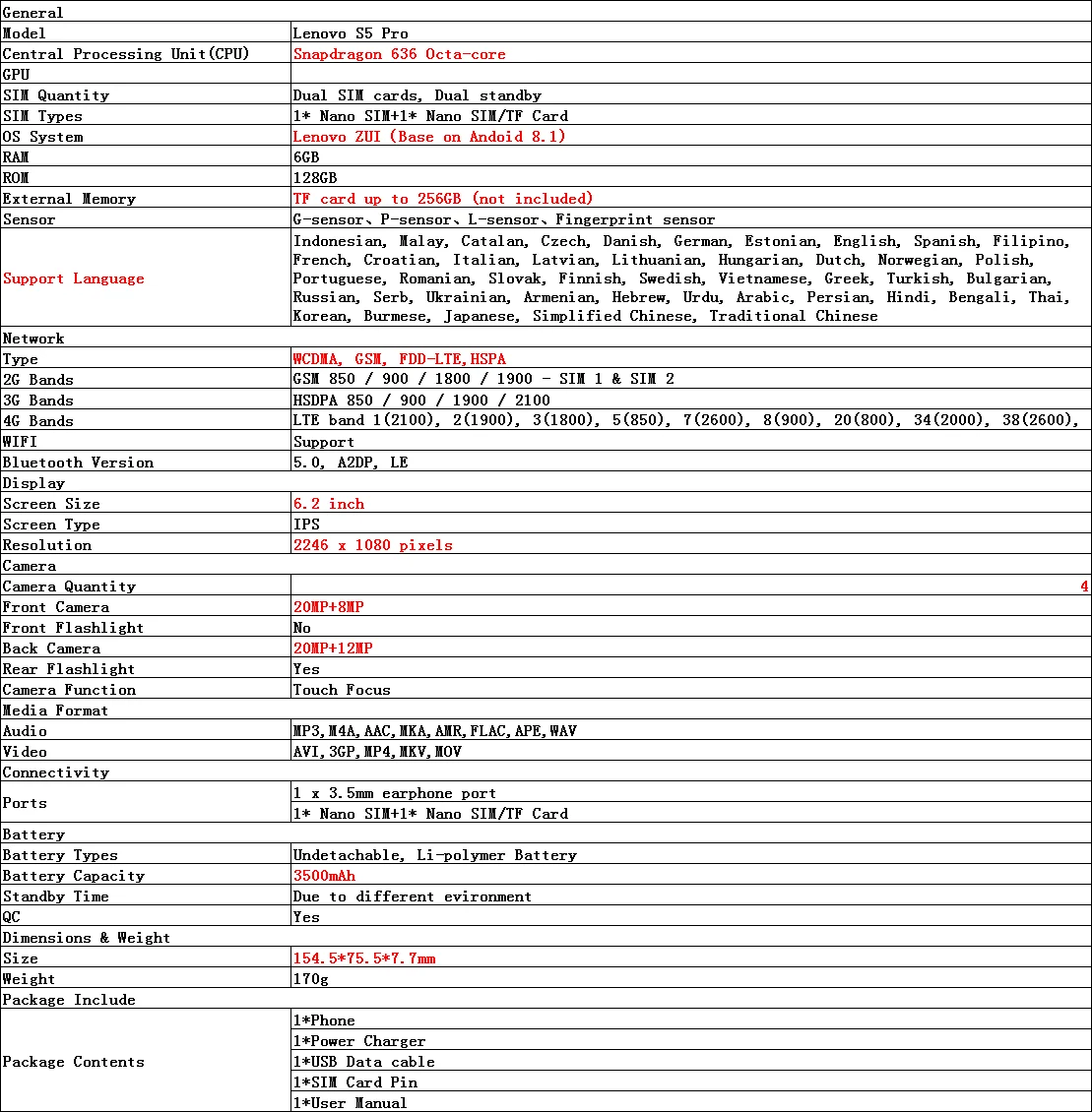 Lenovo S5 Pro 6GB RAM 128GB ROM